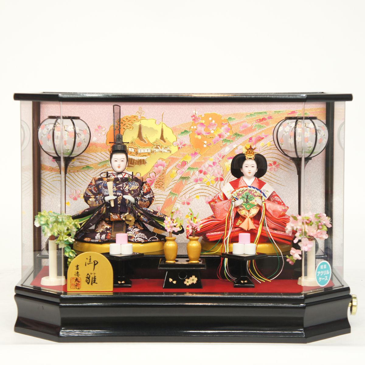価格: 49,590円 レビュー評価:4.47 レビュー数:17 メーカー希望小売価格はメーカーカタログに基づいて掲載していますサイズ:間口55.5×奥行27.5×高さ38.5(cm)(社)日本人形協会認定 優良店芥子二人 木製道具 パノラマアクリルケース商品番号:h243-sg-6-1bp春らしい色合いでまとめられた親王ケース飾りです。殿姫には淡いパステルカラーで仕立てられた衣裳を着せ付けています。袖のボリュームもたっぷりで、重ねのグラデーションが美しいですね。お道具は木製道具を使用しています。ケース背景には桜の花々が散りばめられており、お子さまのお祝いにぴったりのお雛様となりました。こちらは、アクリル素材のケースを使用しておりますので、出し入れも簡単で安全面も考慮されているため大変好評をいただいております。雪洞は電気コード式で灯りが点きます。サイズ:間口55.5×奥行27.5×高さ38.5(cm)三月初めの巳の日(上巳の節句)、草や紙、木で作った、人 (更新日時:2018/01/13 14:31) Supported by 楽天ウェブサービス |